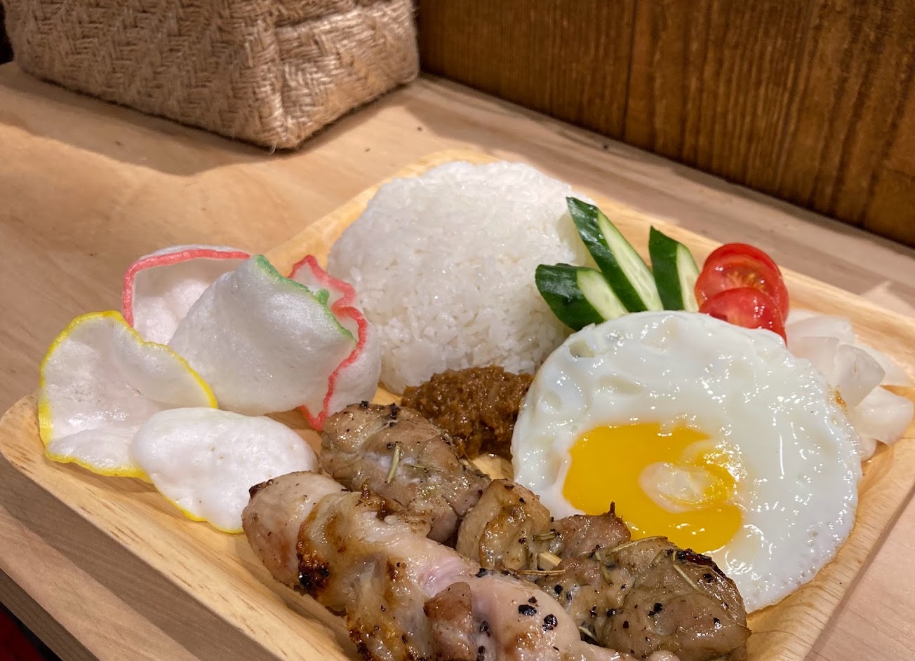 有咖椰吐司、雞肉串、2種飯類?