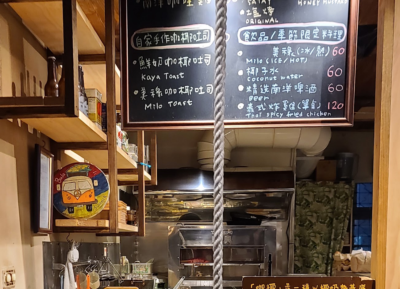 我平常是很少在寫評語的,但是這位老闆真的很有熱情的在做他喜愛的事情,老闆熱情招呼,對每一個客人解說餐點,也會很貼心的告知客人注意碗盤燙之類的,即使只有他一個人在店內這麼的忙碌,又煮咖喱又烤肉烤土司的,他還是都把這些事都做周全了,讓人敬佩,也完全沒有因為很忙而不耐煩,配上店裡的島風音樂就讓人覺得很放鬆,這次只點了南洋咖喱因為剛好午餐時間,咖喱很好吃,濃淡適宜,下次再回訪吃老闆的招牌咖椰吐司,我快要吃完的時候剛好店外來了四個女孩,等我吃完他們就能進來,我於是脫口而出說我快吃完了~~想讓她們能快進來,但是老闆卻說「沒關係你慢慢吃,我們按照客人順序」真的讓人很感動,但是體貼是互相的,我剩兩口快吃了讓外面的人進來,因為外面下起了雨,走出去時外面的女孩們也一直說謝謝,一場突如其來的雨,一間小小的店,暖暖的人情味。