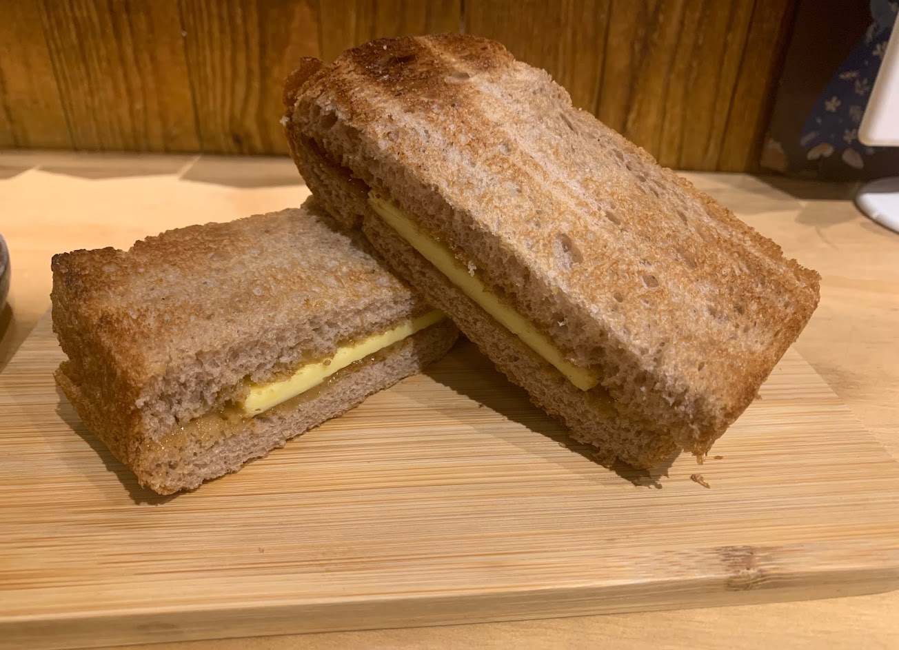 吐司香氣足,口感外酥內軟,冷奶油份量適中,不會太膩