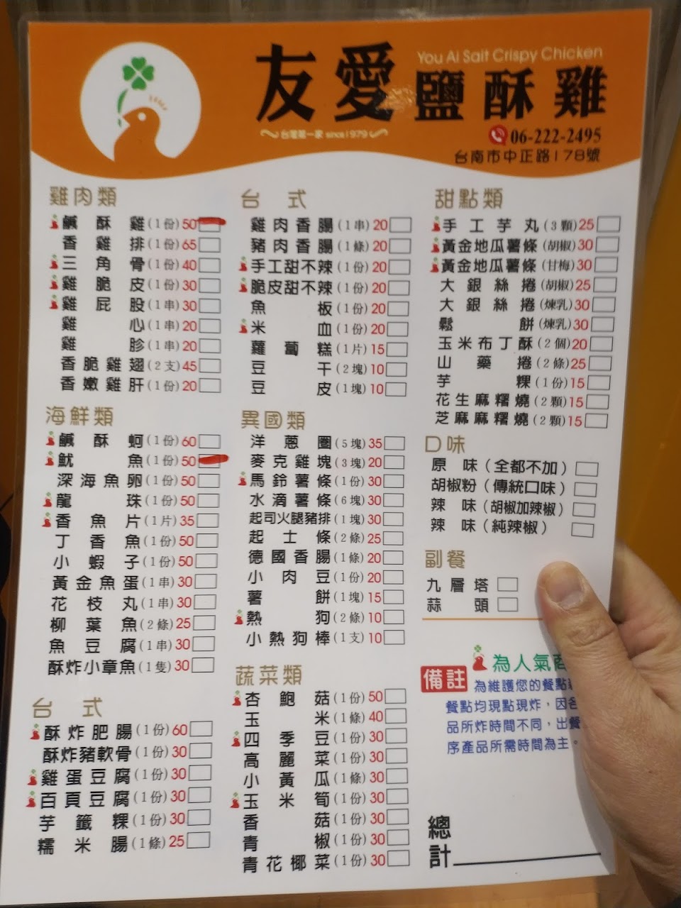 2024最新在地推薦餐廳的菜單_友愛鹽酥雞-中正旗艦總店的菜單、圖片