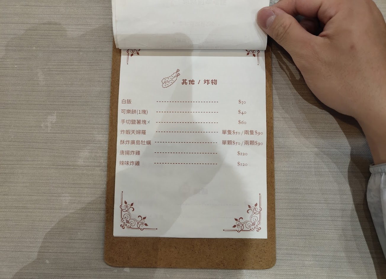 ▪️黑糖牛奶?120 ▪️太妃糖奶酒布丁?90 ▪️歐姆歐姆鍋巴飯(加起司+35)?160 ▪️花生醬起司炸雞甜甜圈咖哩飯?275 ▪️炸物優惠價-限加購一次(唐揚雞)?150