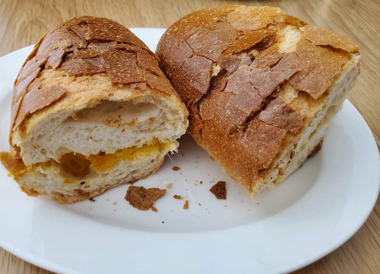 咖椰牛油包外皮酥脆,麵包體Q彈有咬勁,吃到冰冰的牛油層次很豐富。