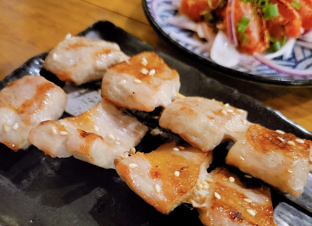 個人心得以下: ✨️塩烤豬舌串 160/兩串 吃起來堪比牛舌,烤至Q彈不乾澀,塩烤帶出甜味,整體上非常好下酒。