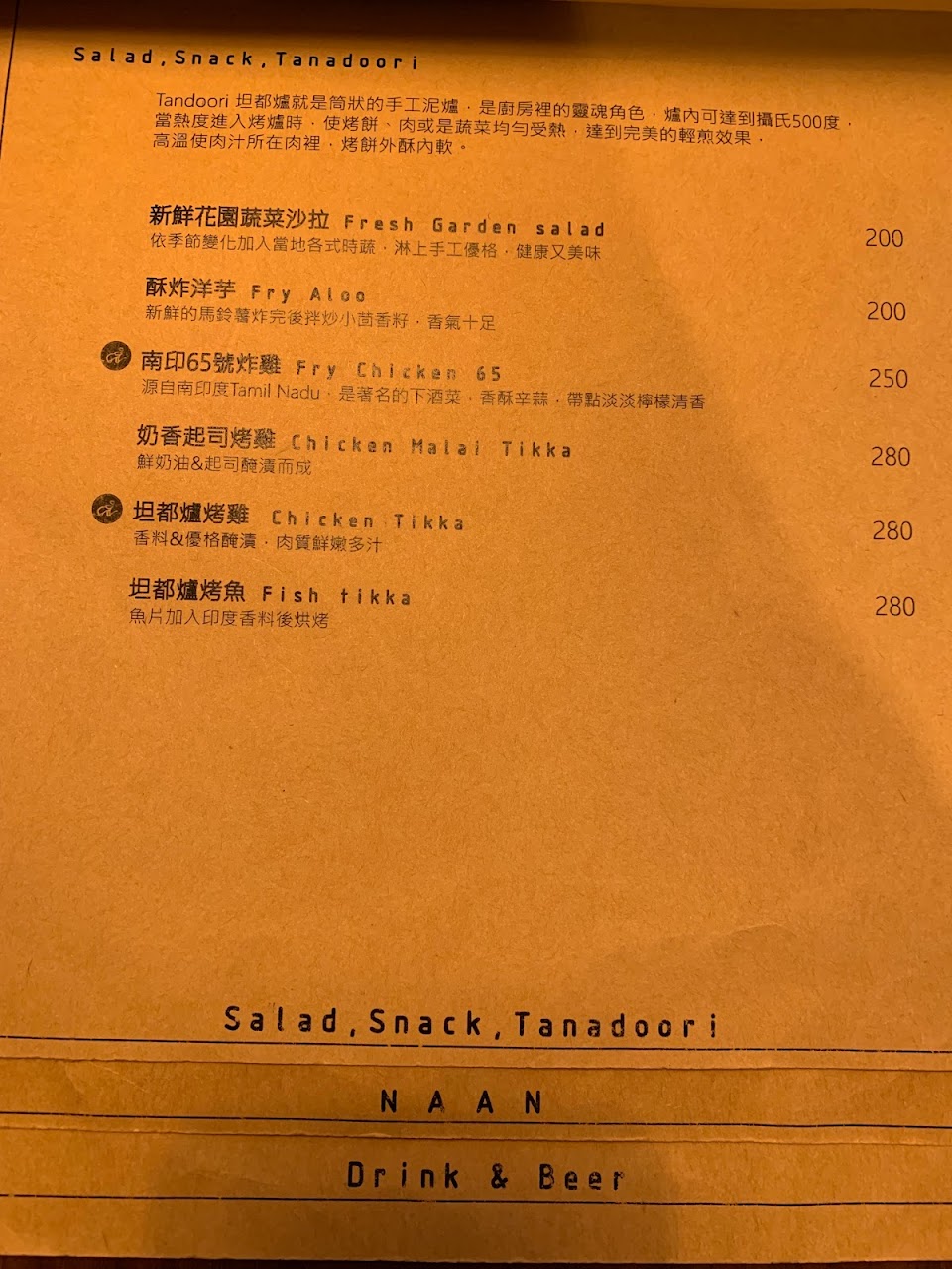 坦都爐烤雞單吃本身調味比較淡,但配上付的優格醬很和諧,雞肉鮮嫩多汁超好吃