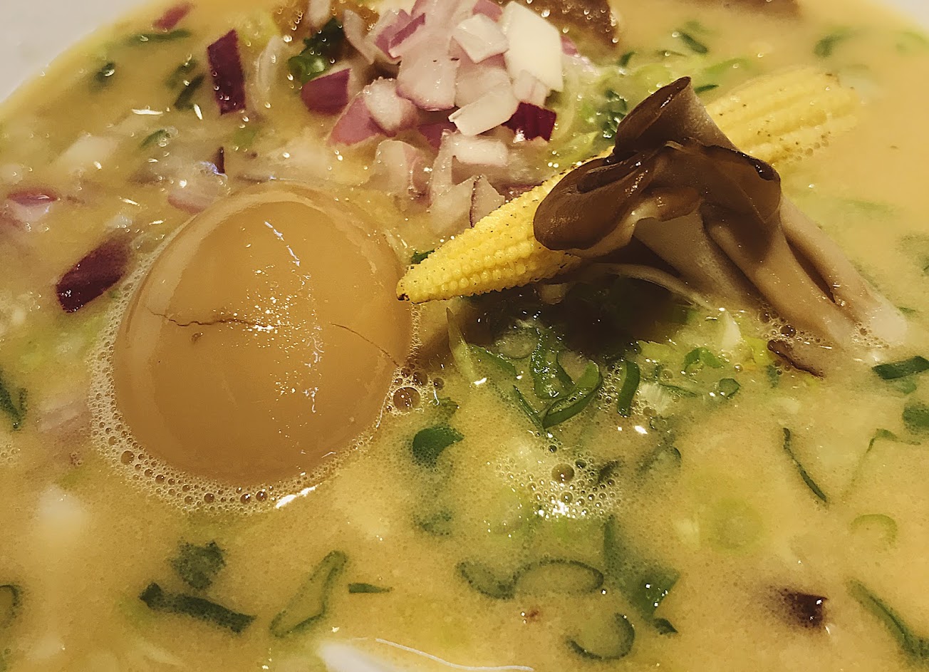 菜真的很多種,這點我很愛,但洋蔥不確定是不是沒泡過水的原因,有點嗆,搶了雞白湯的風頭,甚至吃糖心蛋的時候都有點變味,讓人有點困擾。