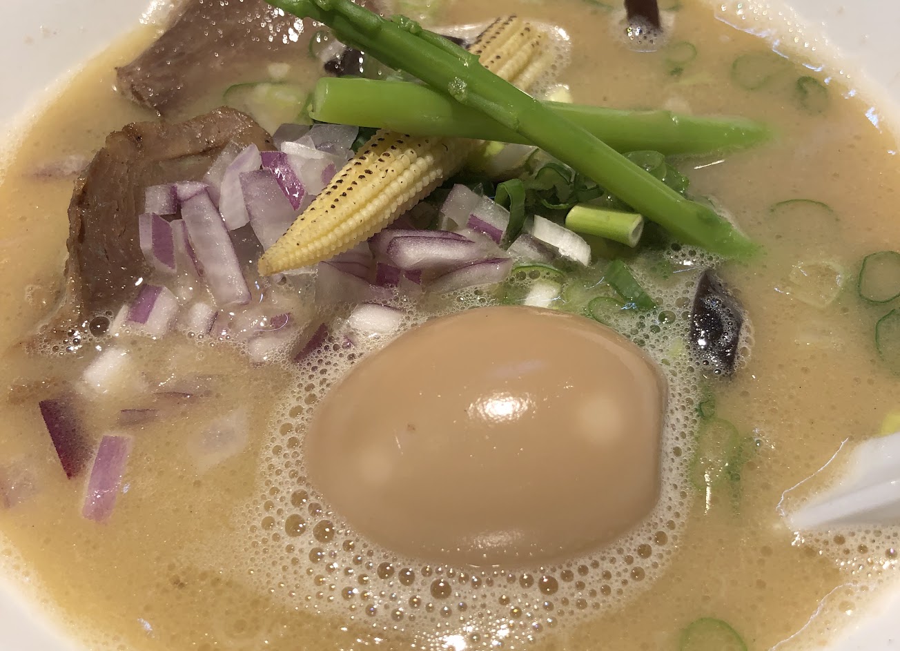 湯頭夠味、厚叉燒香噴噴、糖心蛋會爆漿、麵條Q彈好吃、燒烤玉米筍蘆筍脆脆畫龍點睛、解渴 爽