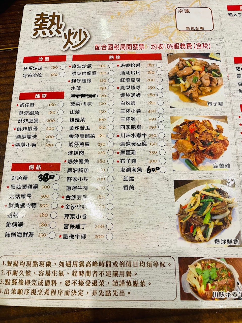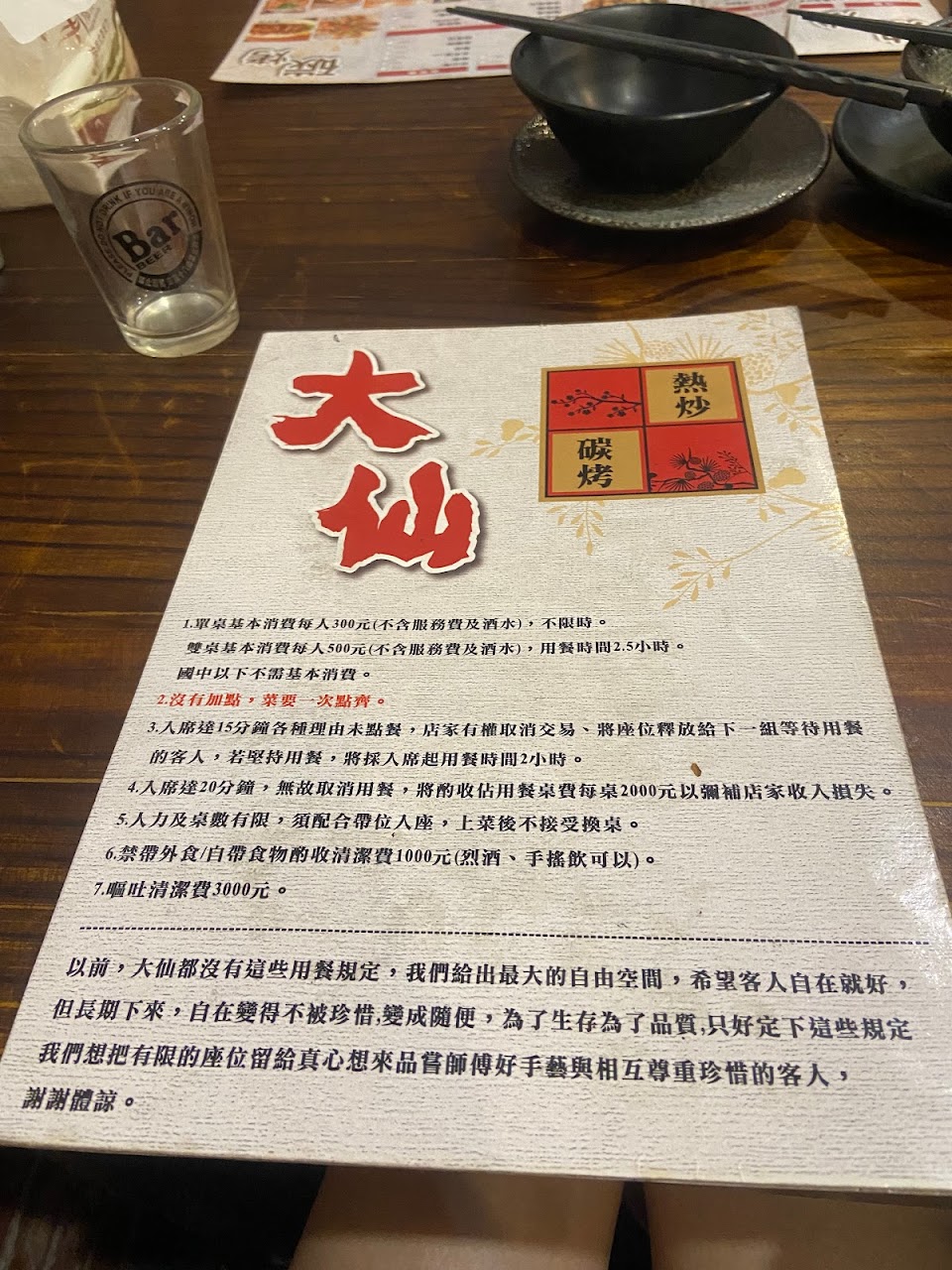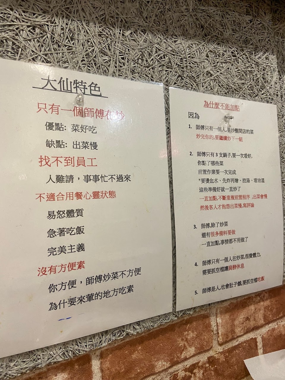 來玩在民宿附近的熱炒「大仙的注意事項」可以看圖?我覺得出菜不會到很慢阿~~~