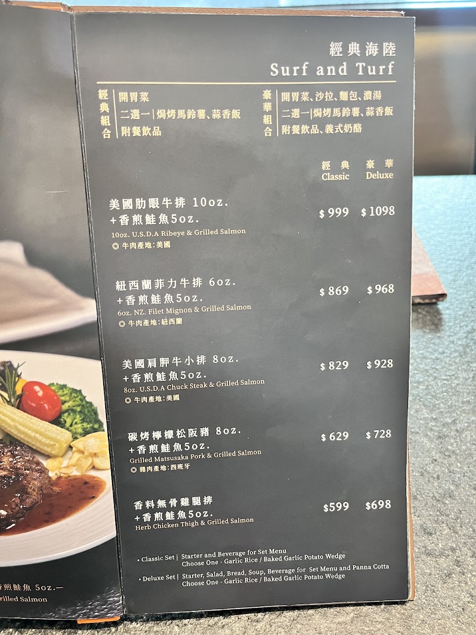 我們都叫1314雙人套餐,各選了四樣主餐印象選兩個菲力牛排五分熟(接待特別問幾分熟)、一個紅酒燉牛肉一個松阪豬。