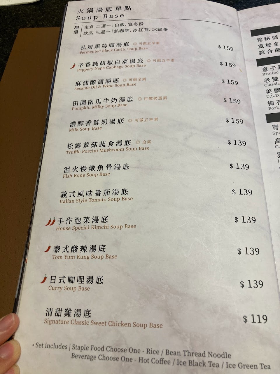 兒童套餐 辛香純胡椒白菜雞肉鍋 牛肩頰肉 牛肉麵 炸蝦炸魚沙拉 火鍋湯底