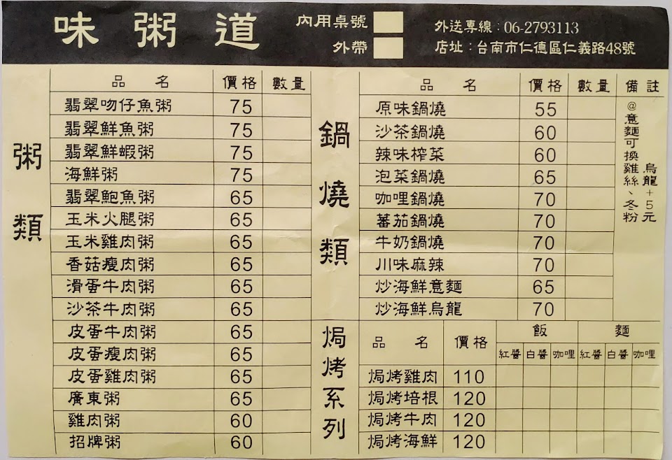 2024最新在地推薦餐廳的菜單_味粥道的菜單、圖片