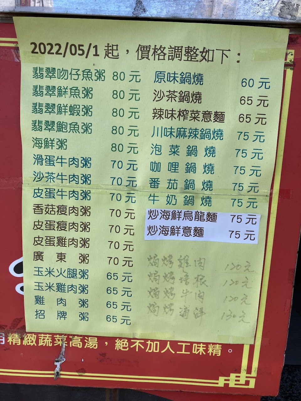 平時只有腸胃不適的時候會想吃粥,但又不安本分只吃白粥時,就會想起味粥道。造訪了兩三次,覺得粥蠻稠的,不像有些店家的水份比例,讓你吃完粥就像順便喝了一碗湯的感覺,每次等待的同時就順便看了牆上的菜單,想說下次試試鍋燒或焗烤好了,結果還是每次都買粥(笑)…後來特地去店內試了評價不錯的牛奶鍋燒,湯頭果然帶點蒜味,心想如果在裡頭能撈到大顆蛤蜊或干貝一定很棒(感覺會很搭),同時段用餐的鄰座客人點了焗烤好像也不錯…20220118