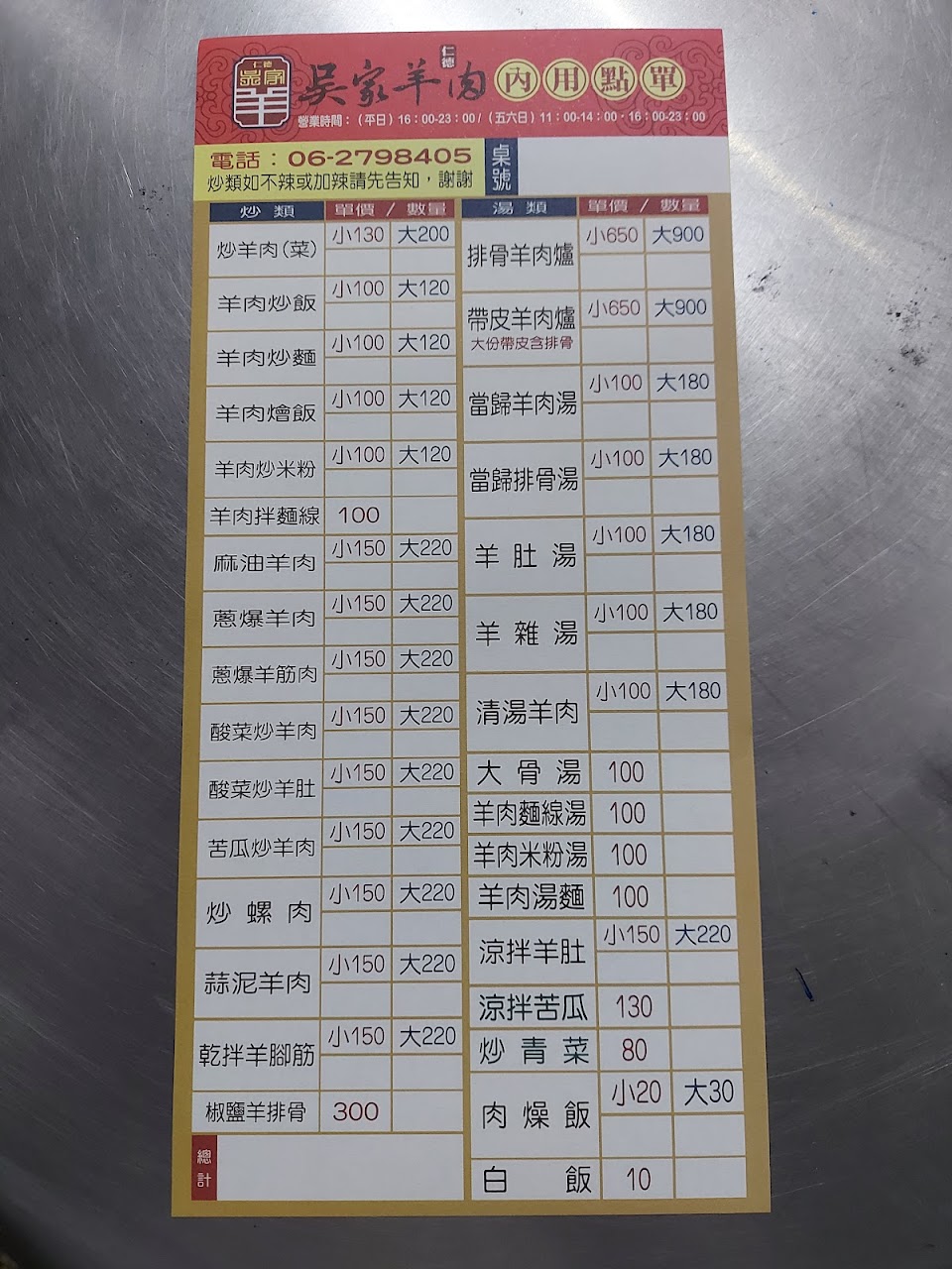 2024最新在地推薦餐廳的菜單_仁德吳家羊肉爐的菜單、圖片