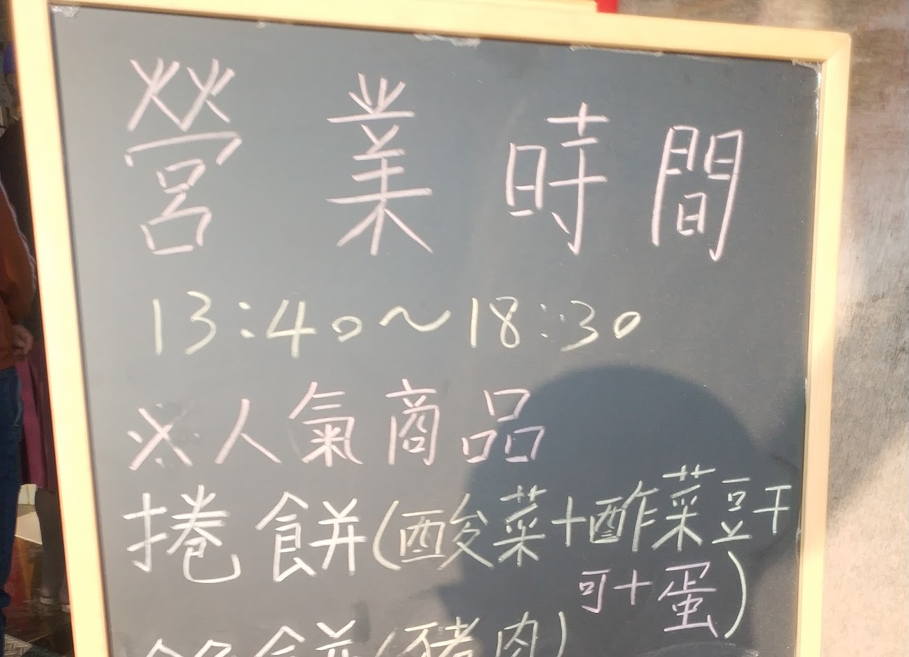 本人最喜歡吃的是捲餅及韭菜盒,每每都要排隊等一下下才能享用到美食,捲餅是蔥油餅捲夾酸菜及豆乾,滋味每每讓我隔個一兩天就要來一捲。韭菜盒皮薄酥脆餡又多,真讓人吃了還想再吃…