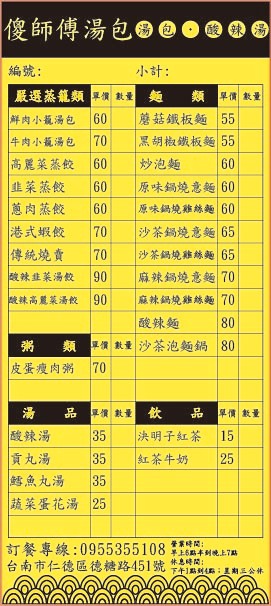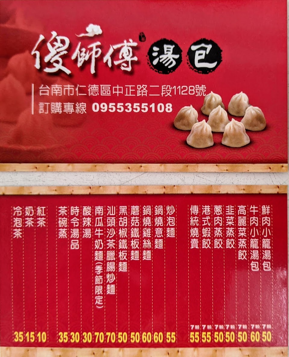 2024最新在地推薦餐廳的菜單_傻師傅湯包-仁德店的菜單、圖片
