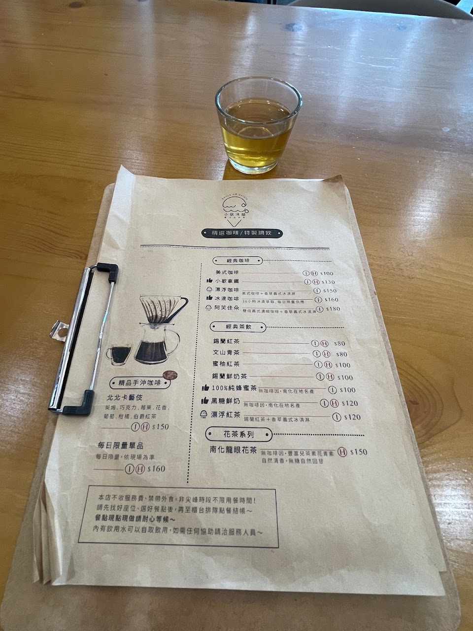 候餐時,老闆會先來一杯冰麥茶,先解解渴