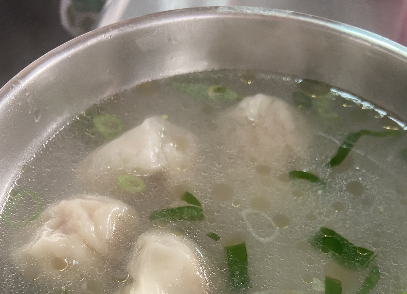 高麗菜豬肉水餃$2.5 CP值破表? 水餃是店家手工製作的,每顆都能吃到滿滿的高麗菜與豬肉餡,一顆才2塊,肯定要吃飽吃滿阿! 店家還超貼心免費送我們清湯♥️
