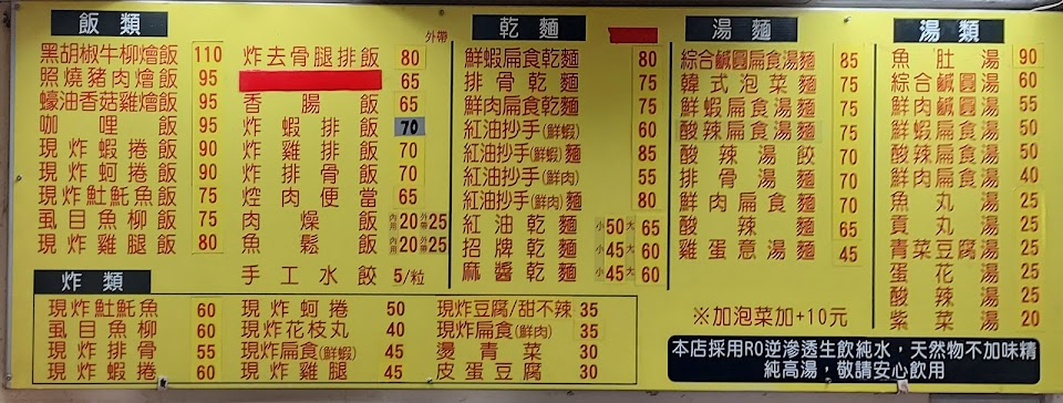 東西還不錯吃,內用送餐速度也滿快的,炸類都是現炸需等待一下,唯一美中不足的是麵類量偏少,食量大的需斟酌一下