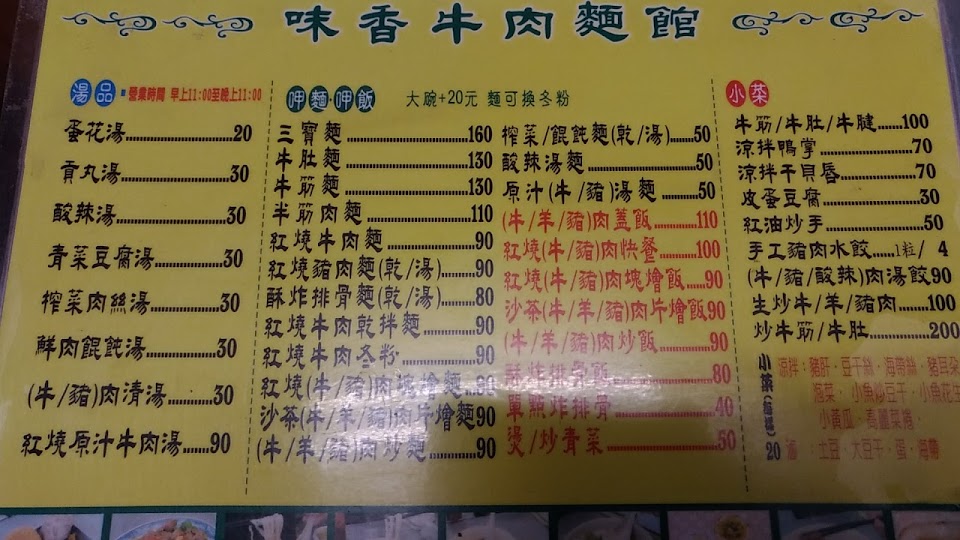 2024最新在地推薦餐廳的菜單_味香牛肉麵的菜單、圖片