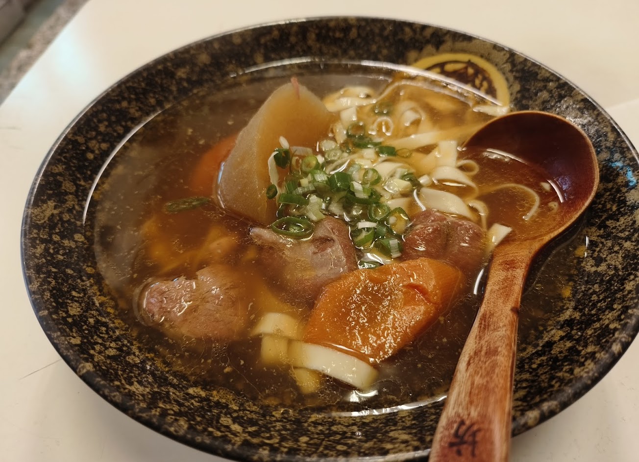 一上桌就先喝了好幾口湯、一入口感覺就知道來對了,湯頭很甘甜《可以喝出蘿蔔燉出來的原味》寬麵條咬起來有嚼勁、四塊豬腱子肉、燉的恰到好處 軟嫩好入口,紅、白蘿蔔表現出該有的甜味,很爽口。