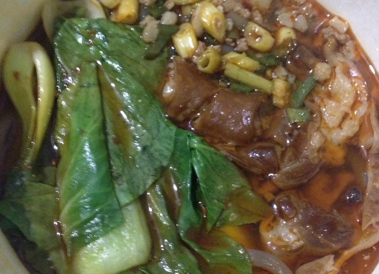 麻辣鹹香一次到位,但又麻而不辣。連我這不常吃辣的人都整碗麵吃完又可以喝個幾口湯。