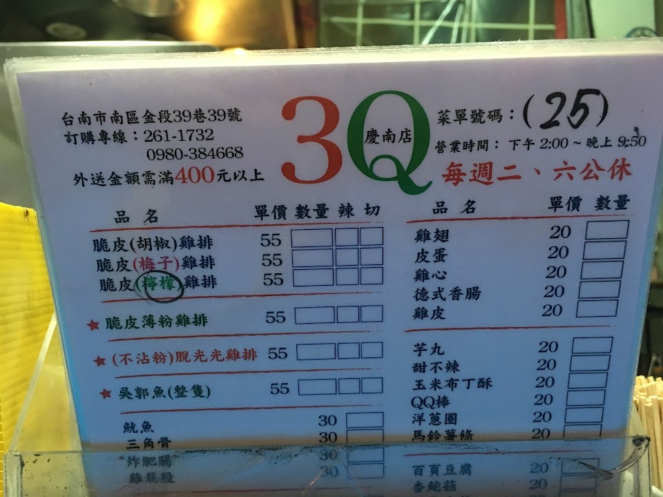 2024最新在地推薦餐廳的菜單_3Q脆皮雞排(慶南店)的菜單、圖片