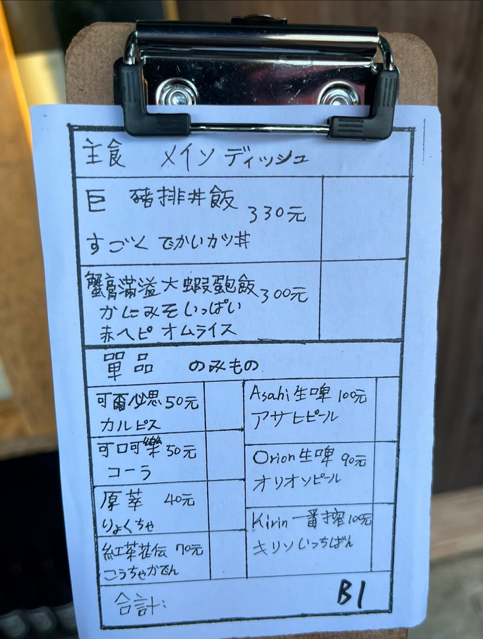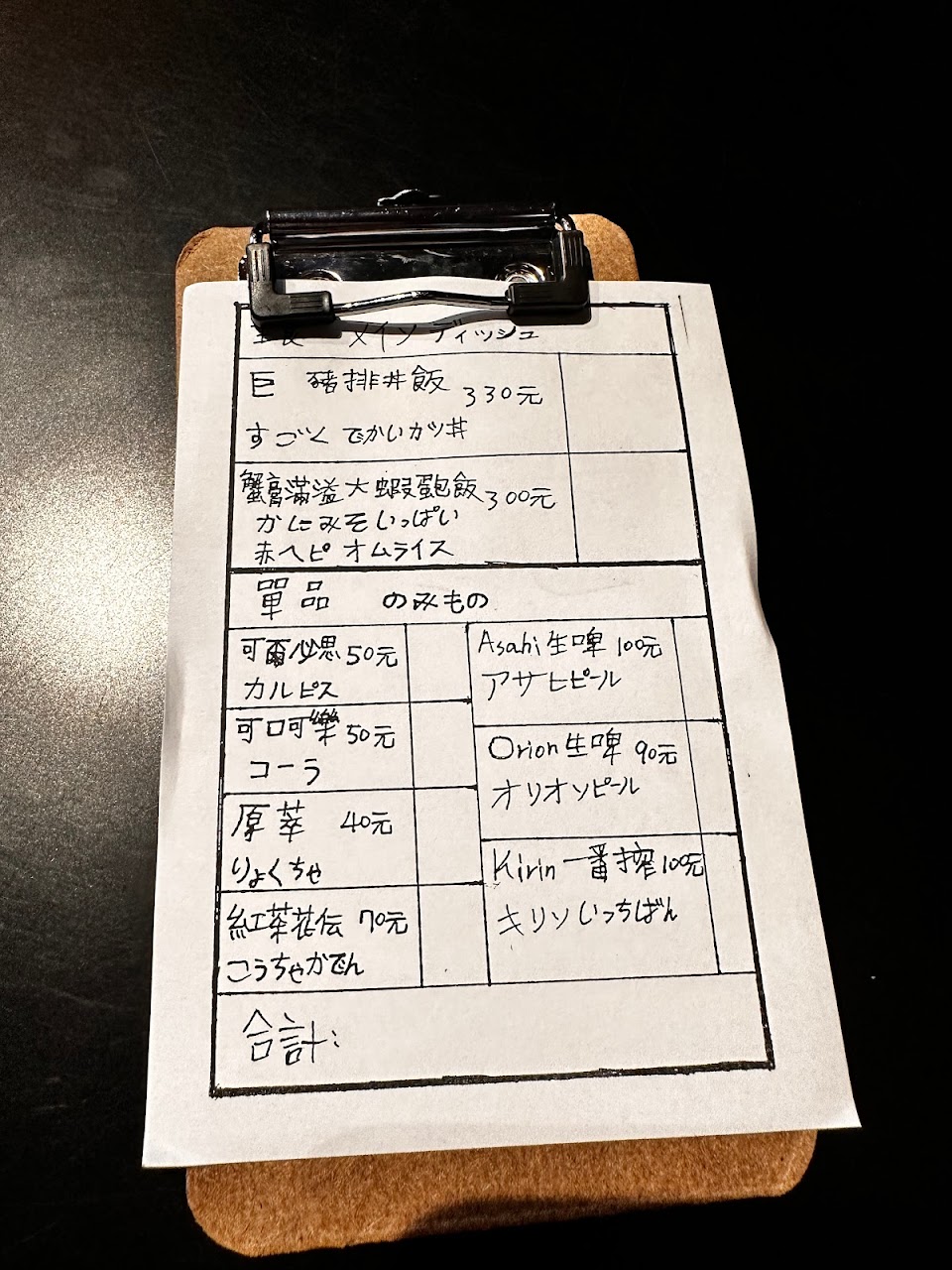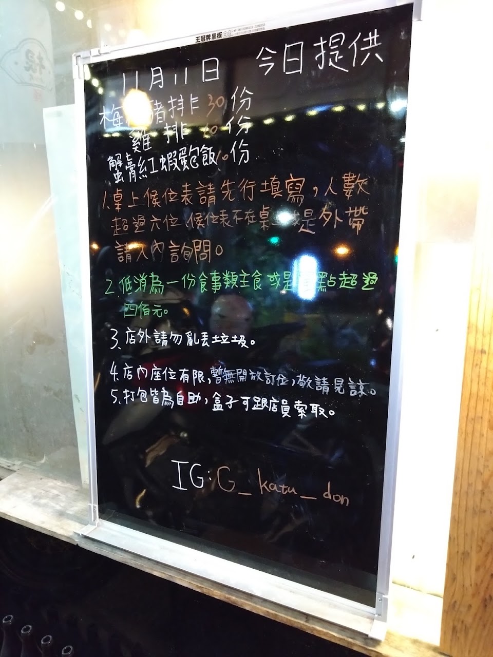 目前還在試營運階段提供巨 豬排丼飯及蟹膏滿溢大蝦蛋包飯能選擇,不定期會有特殊餐點(炸牛排),幕後老闆有經營其他日料店鋪的經驗,有著一定的水準保證。