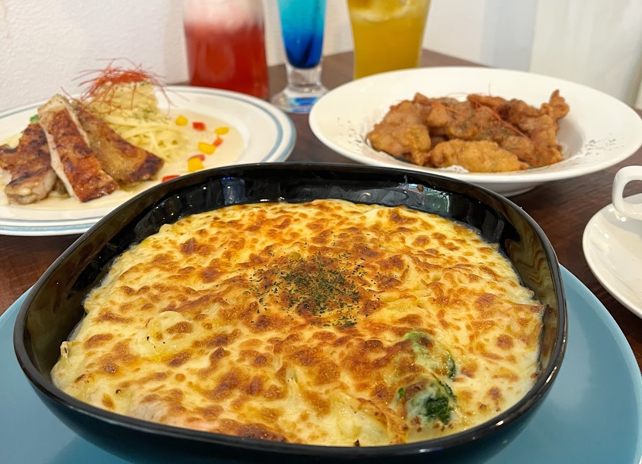 起司焗蛋真的非常好吃蛋香味很重 第一次看到有焗蛋的義大利麵 燉飯 唐揚雞也非常多滋