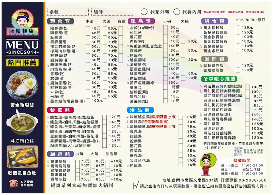 2024最新在地推薦餐廳的菜單_盛櫻鍋燒麵的菜單、圖片