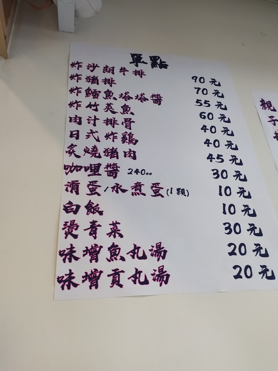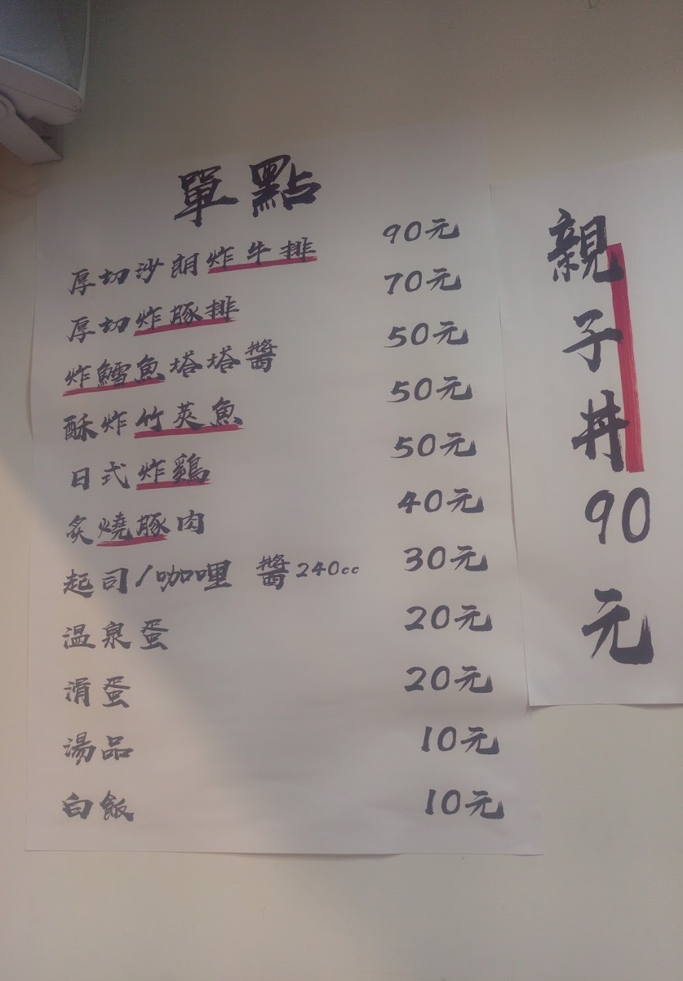 不貴,不會重口味,鄰近打烊時間才去內用, 老闆的功夫和態度也不會敷衍馬虎。半生不熟的蛋攪和著熱騰騰的飯,配上蔥末、洋蔥和炸豬排,很好吃。