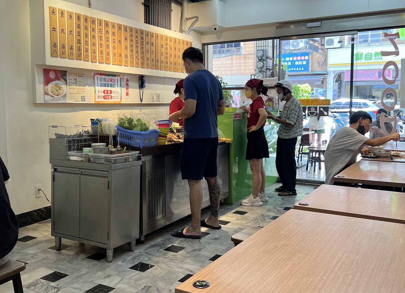 裏面的阿姨們都很親切,用餐環境也很乾淨明亮,冷氣很亮很舒服,在炎熱的臺南完全不用擔心吃完會滿頭大汗
