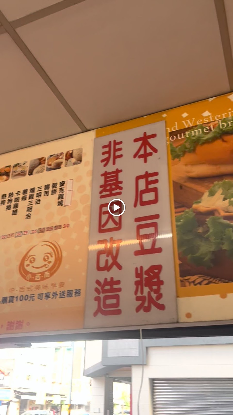 小西南早餐店,常常有特價品會用大紅布條掛在店門。