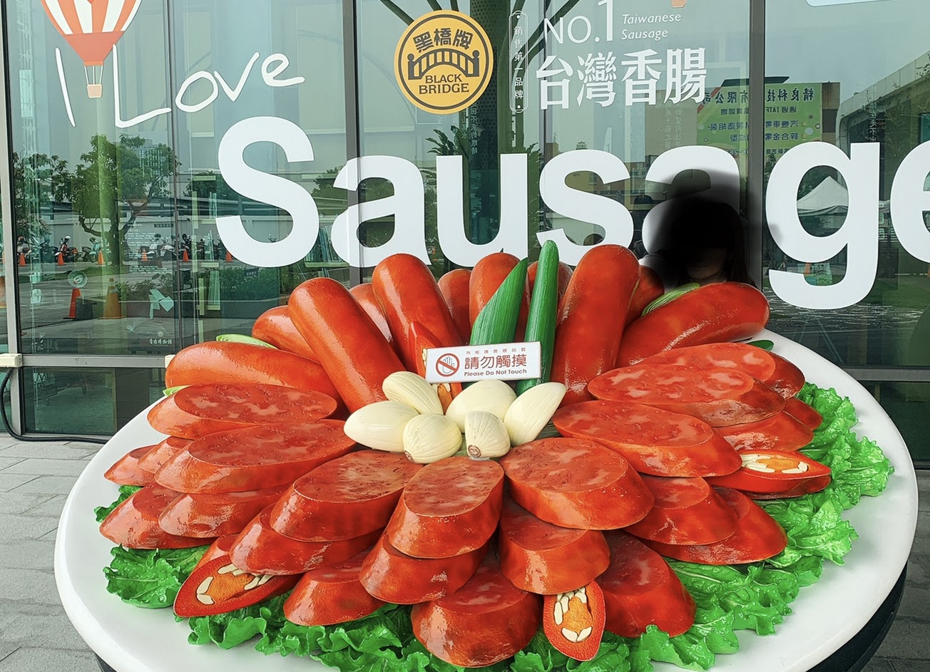 門口擺放著放大版的香腸拼盤