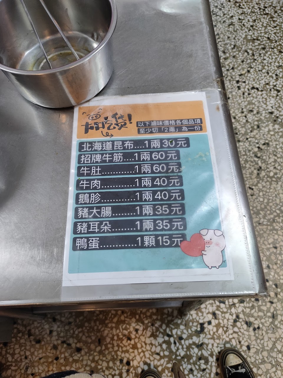 《一年前》滷味有標價了,依兩計價,有低消。照片一顆滷蛋+少許海帶,共105元,正方形小便當盒。供參考~