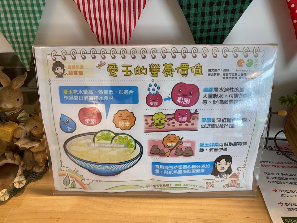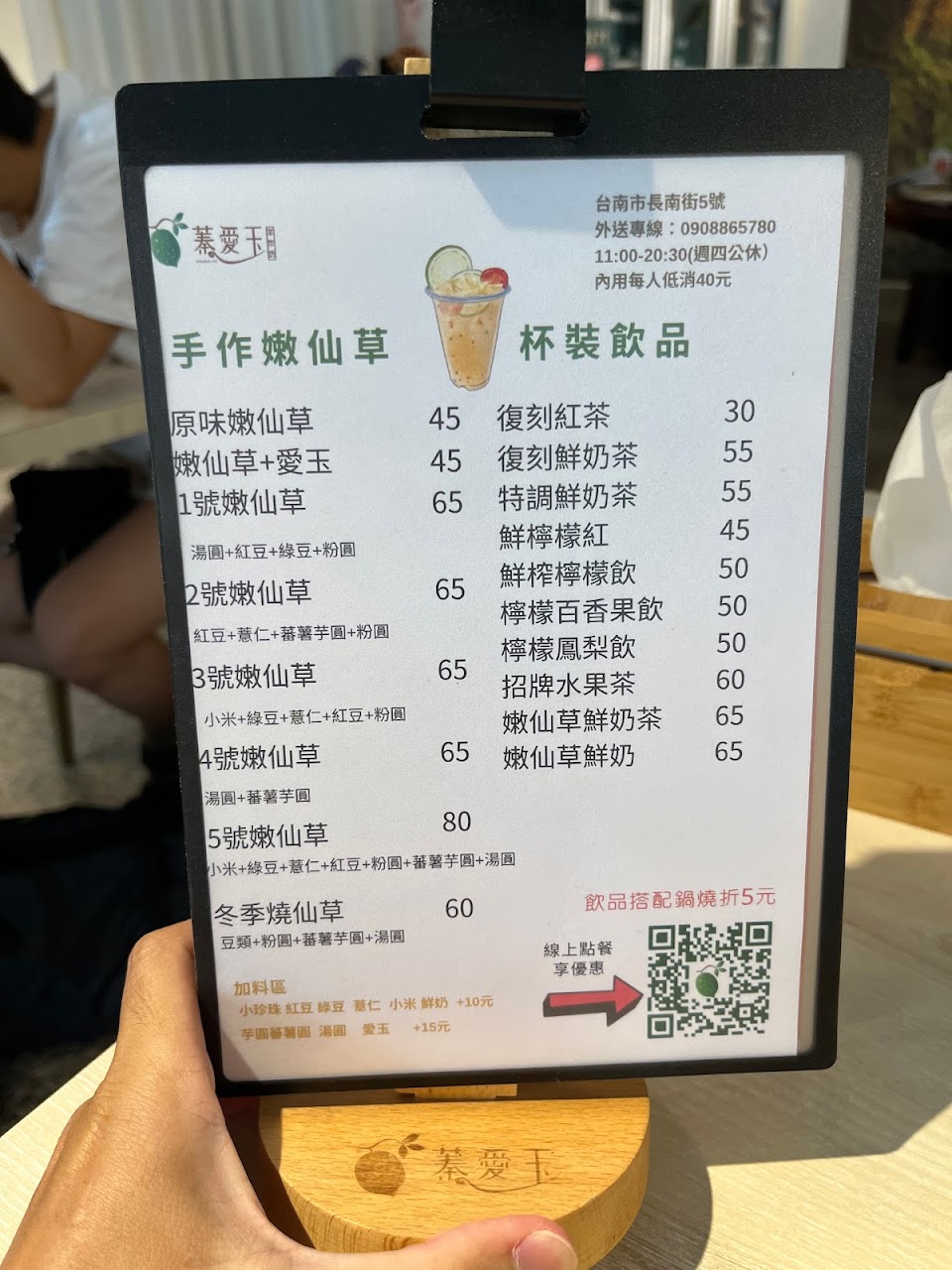 店家環境開闊明亮,有冷氣,下午不休息,不用擔心觀光客排隊,非常舒服,細節處觀察得出店家對整潔要求,不愧是在地朋友大力推薦,蓁愛玉菜單上還有好多口味,其中彩色湯圓也很有人氣,未來有機會再來試試熱愛玉跟其他冰品。