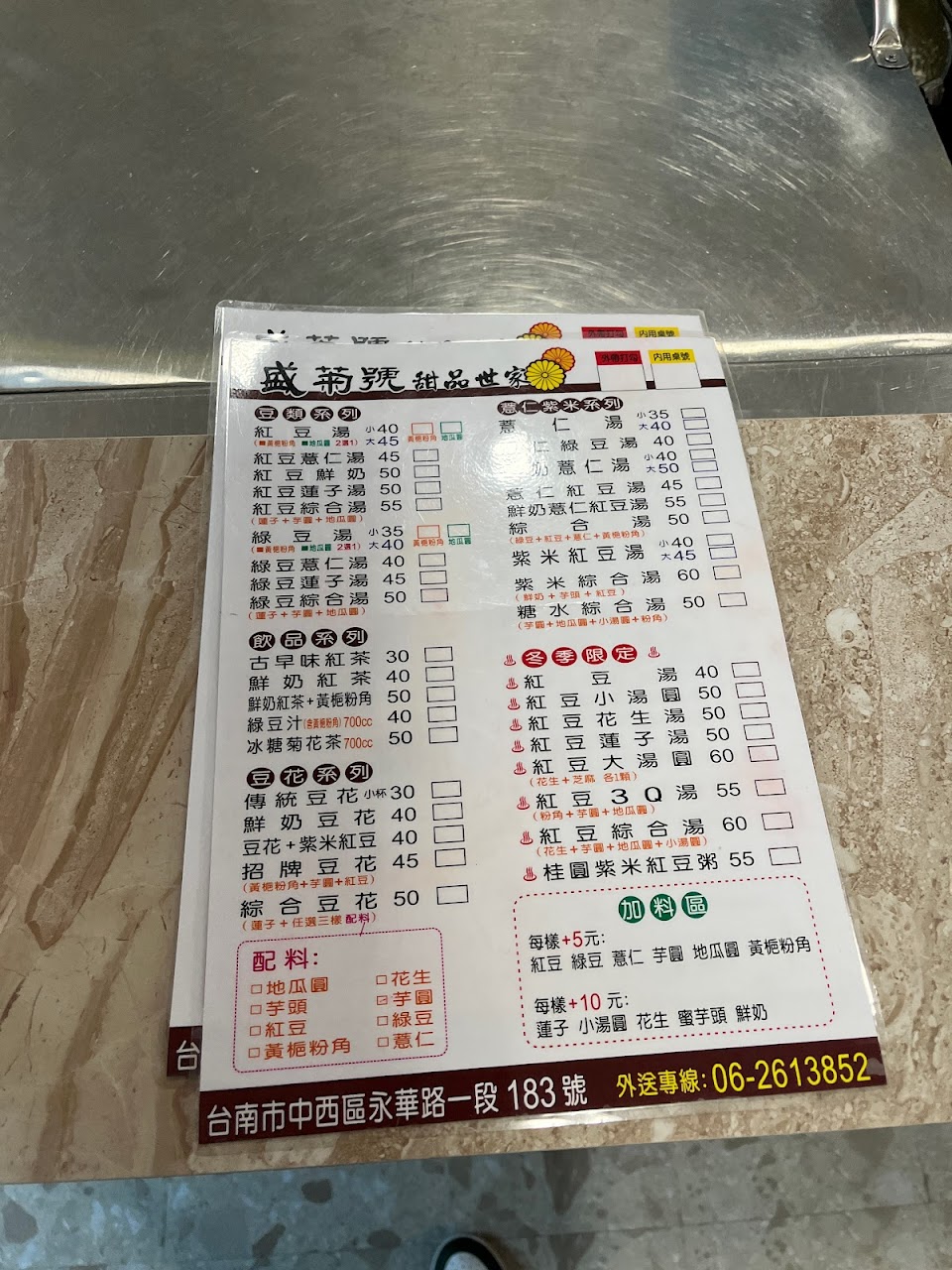 2024最新在地推薦餐廳的菜單_盛菊號甜品世家 台南總店的菜單、圖片