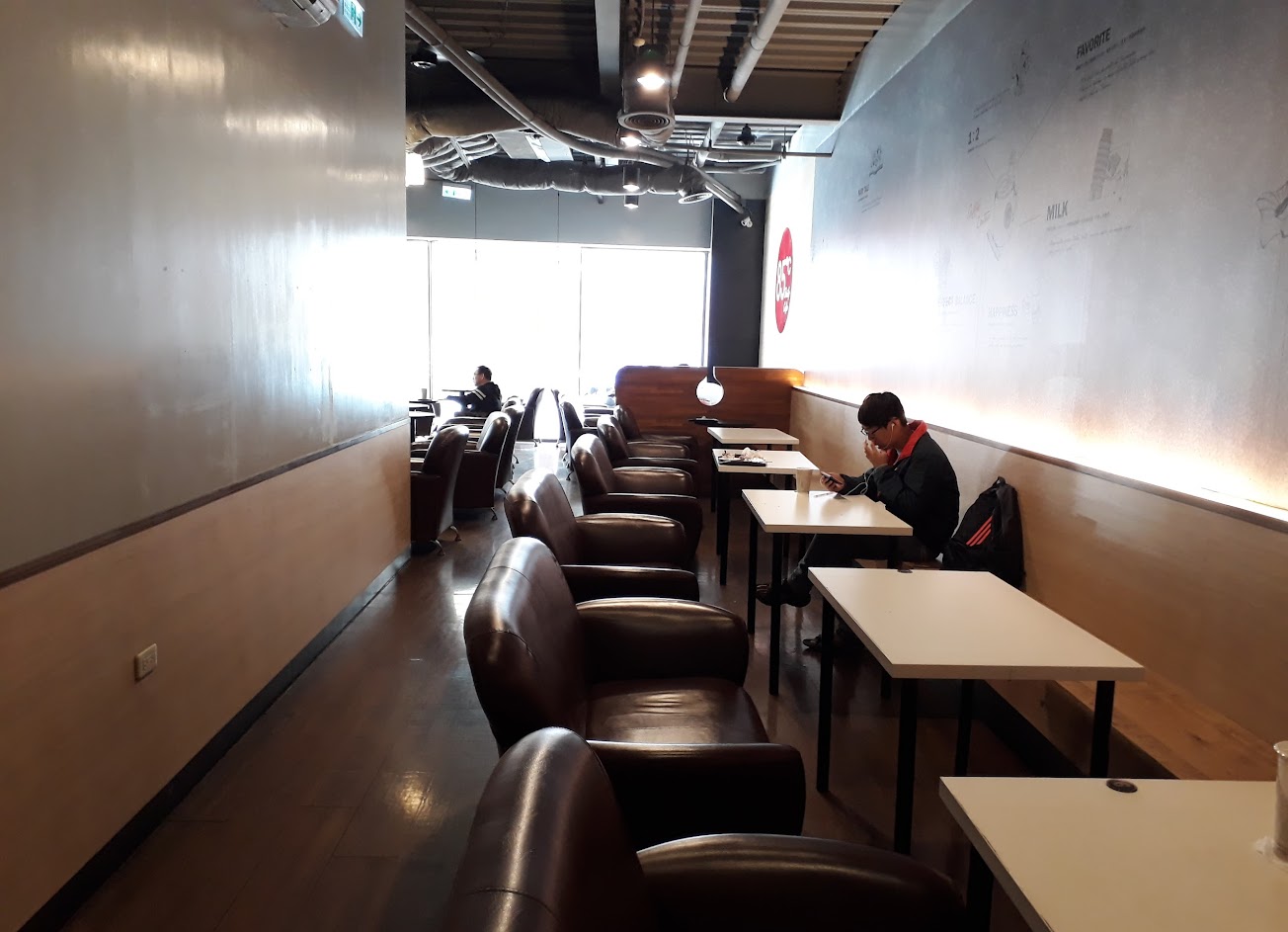 連鎖咖啡店。有良好的空間佈置。適合談話,休息。