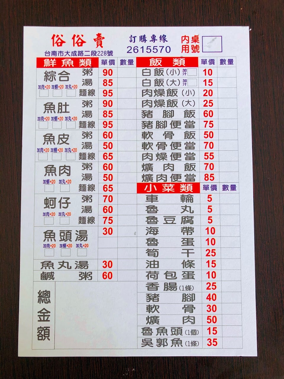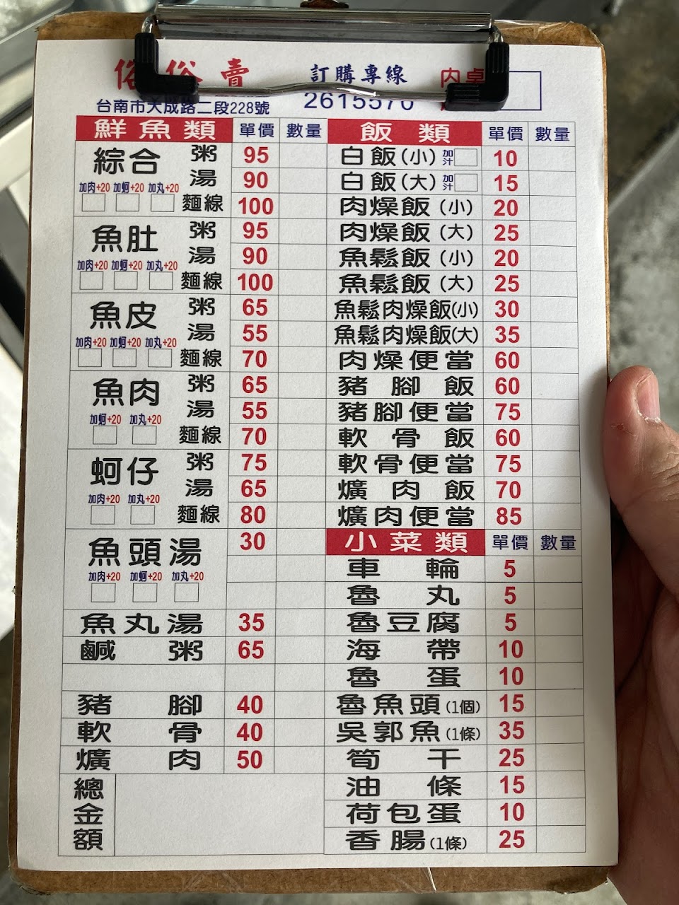 2024最新在地推薦餐廳的菜單_俗俗賣虱目魚的菜單、圖片