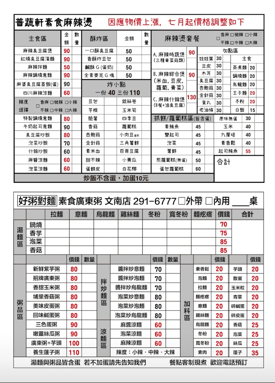2024最新在地推薦餐廳的菜單_好粥對麵&普蔬軒 文南店的菜單、圖片