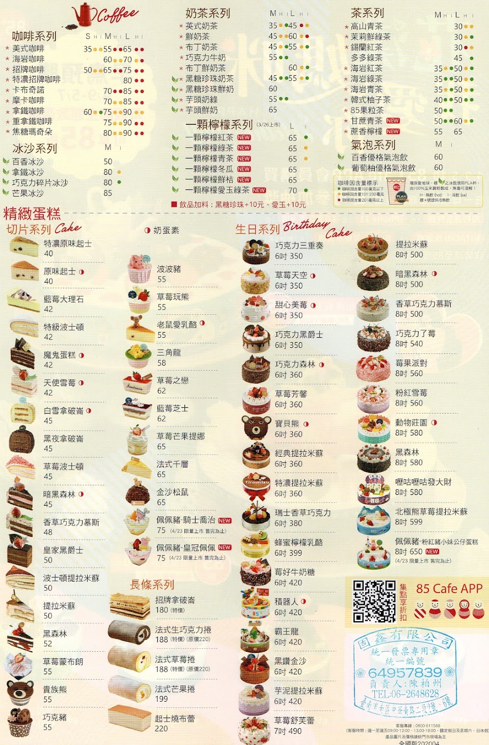 2024最新在地推薦餐廳的菜單_85度C的菜單、圖片