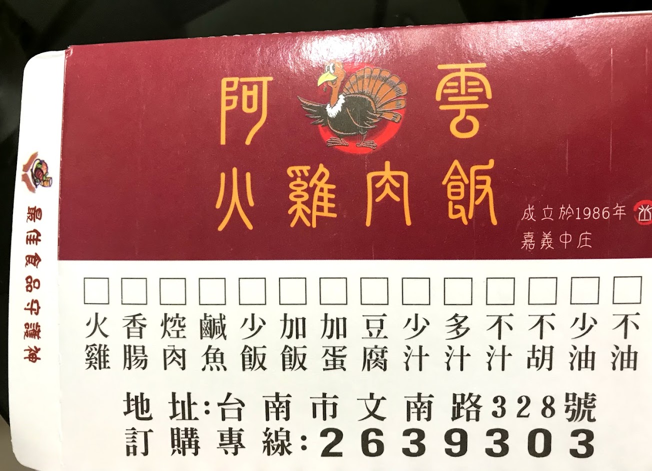2024最新在地推薦餐廳的菜單_阿雲火雞肉飯-文南店的菜單、圖片