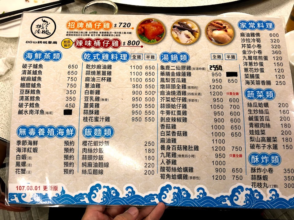 2024最新在地推薦餐廳的菜單_捌陸(86)山雞城的菜單、圖片