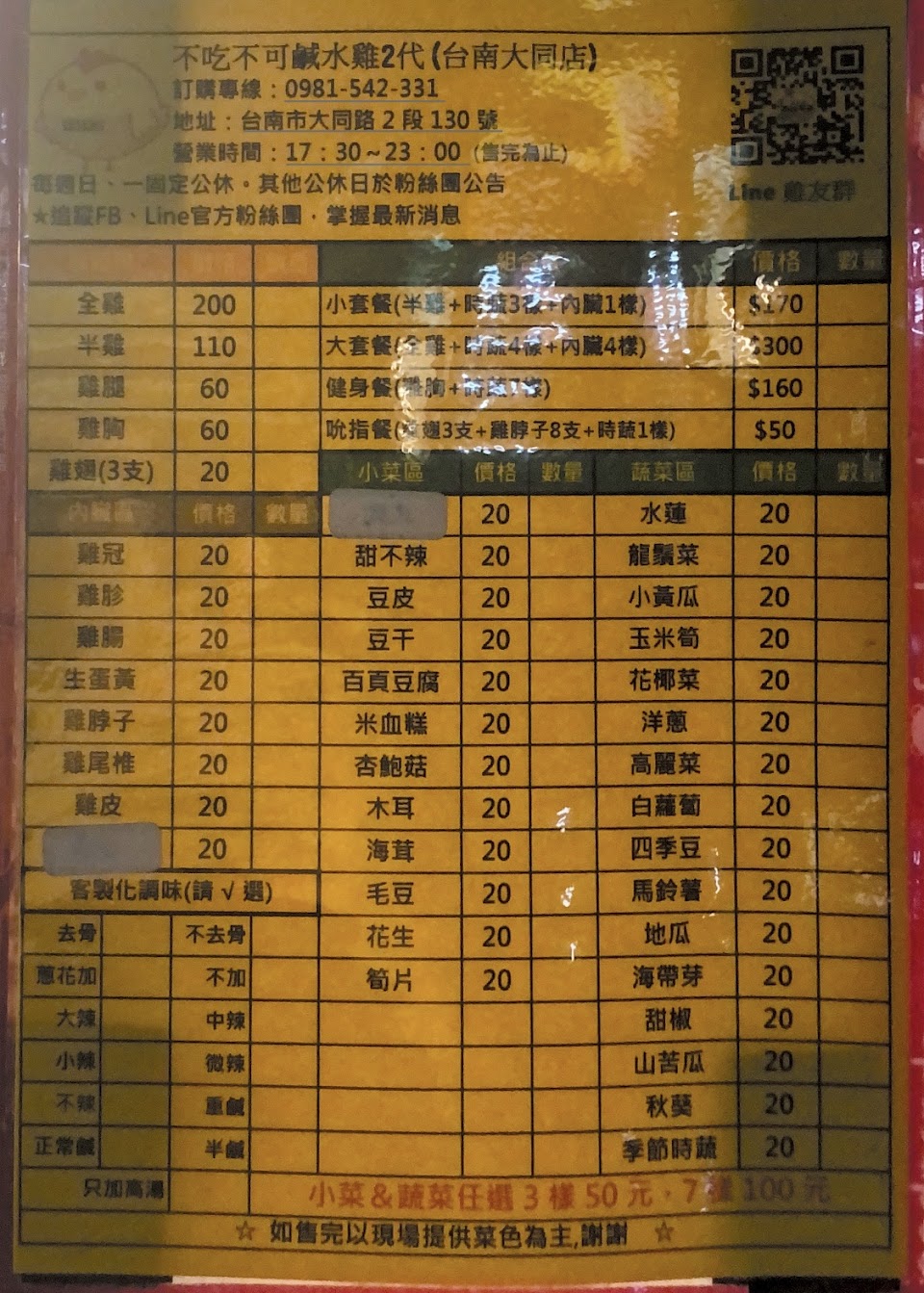 2024最新在地推薦餐廳的菜單_不吃不可鹹水雞二代店 台南大同店的菜單、圖片