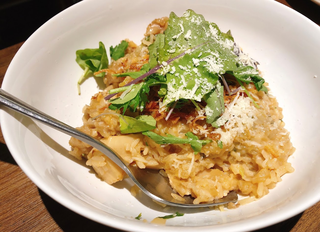 可惜沙拉的醬汁不夠美味,燉飯中的松阪豬肉及雞肉的味道不夠好,對肉類騷味敏感些的人來說可能無法接受。但燉飯的口感跟醬汁融合的味道是好的。停車不易,建議提前過去找車位。