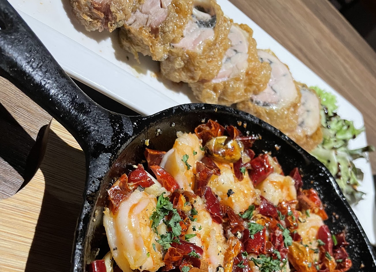 看著評論點餐不會錯?? 辣椒蒜香蝦、蒜蓉蝦義大利麵、白蘭地蘋果、七股炸牡蠣沙拉、無骨牛小排、英式炸魚排、當日壽星三個願望shot