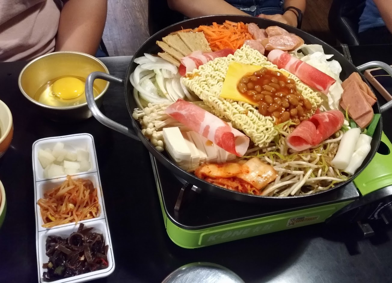 最喜歡吃它的部隊鍋,泡麵鍋。份量大可以情侶一起享用,再另外點些小菜,超澎派。石鍋烤肉拌飯也推薦。