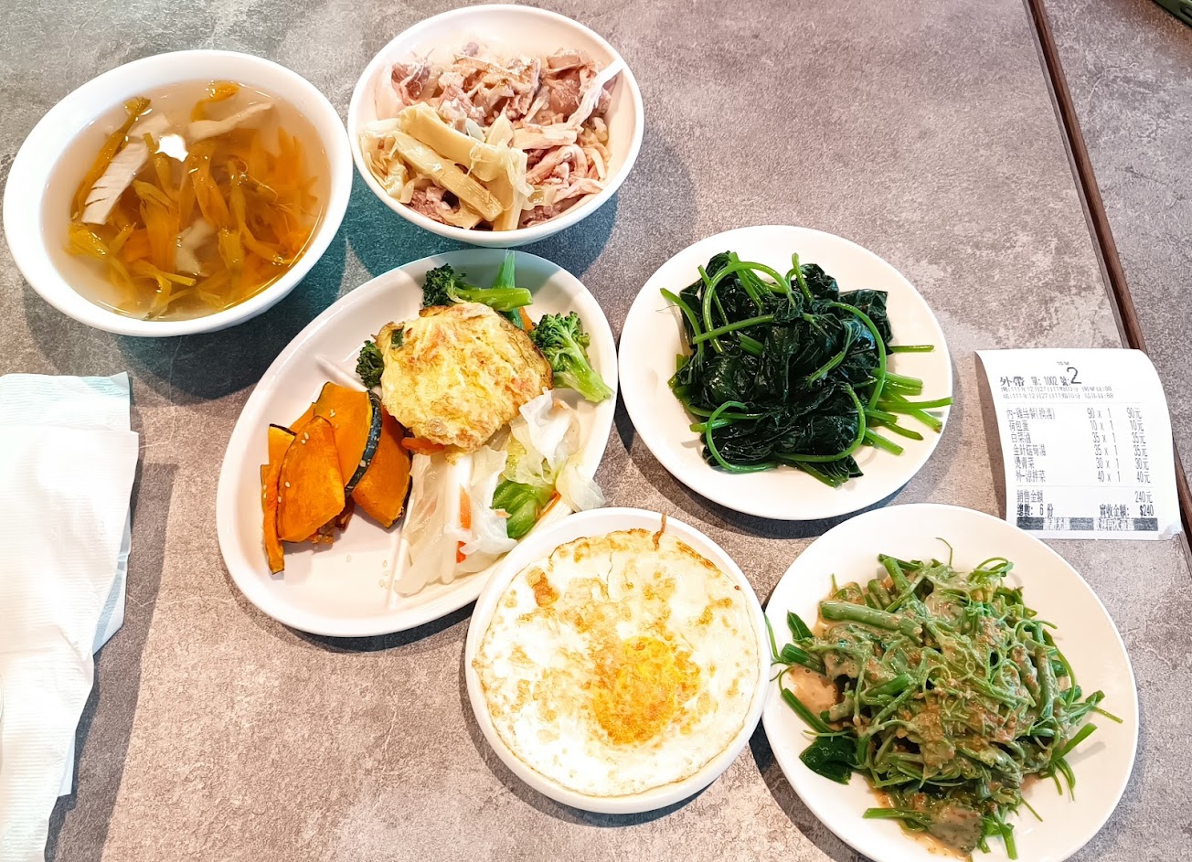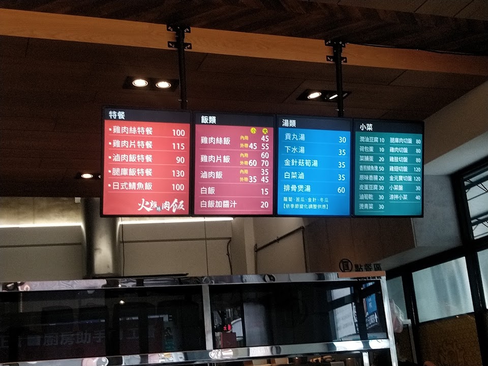連鎖店吧!應該是新開不久,點了”火雞肉片套餐”(可選三樣小菜搭配菜圃蛋) “腿庫套餐”(筍乾加兩樣小菜搭配滷蛋)套餐都有附紫菜湯,火雞肉片普通有點乾,腿庫飯還不錯,有肥有瘦剛剛好,最值得讚賞的是小菜端上都有加熱過,本以為放在桌上讓客人選菜(菜一定是涼的)想不到端來是有加熱過的,還有建議碗換大一點的,看起來較大噐,而且份量不多,有點小貴。