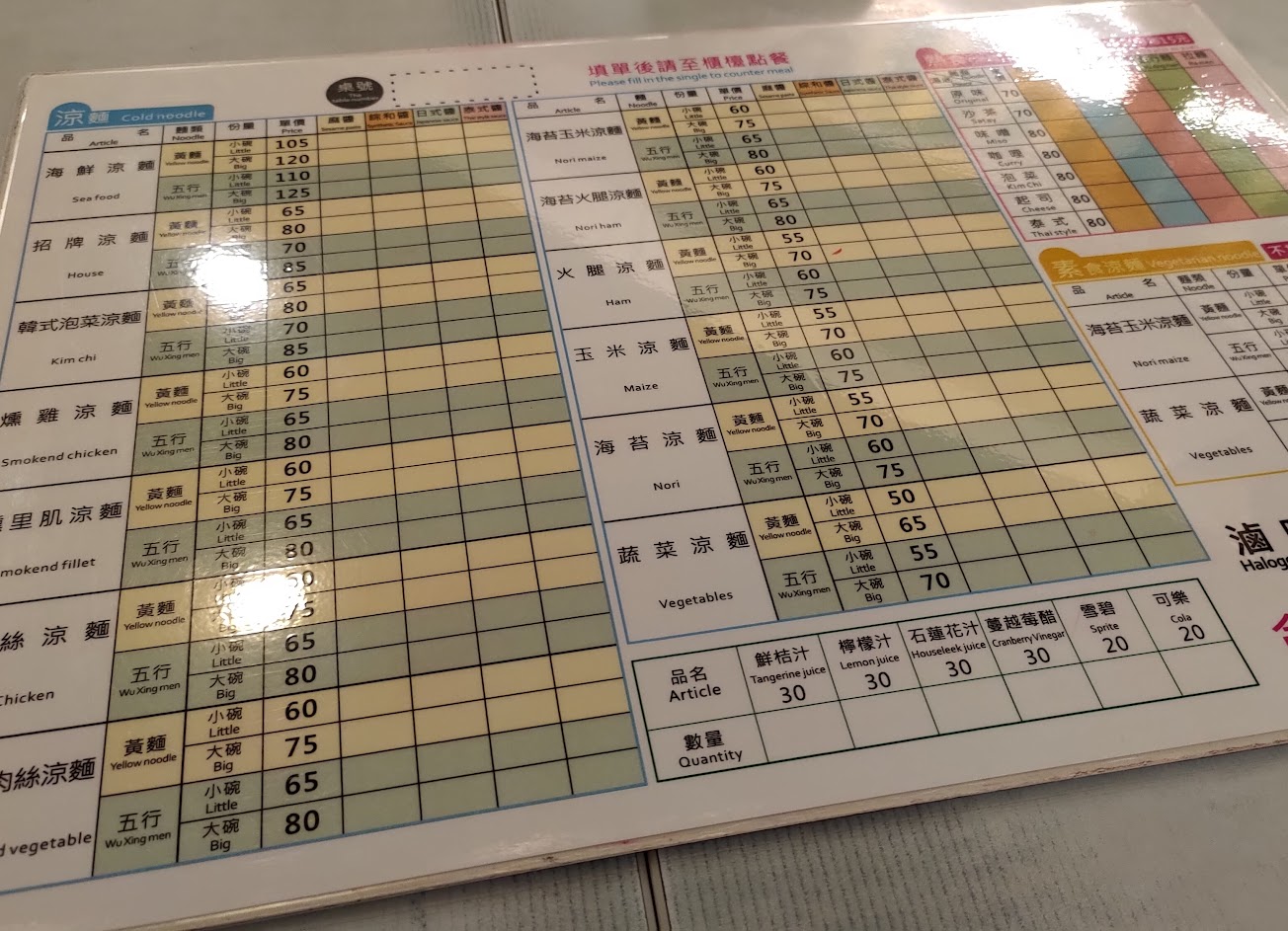 炎熱的夏天,涼麵是一種不錯的選擇,麵條有黃麵與五行麵兩種選擇,配料玉米、海苔、雞絲、火腿….等多種選擇,還有素食的選擇,另外,還有熱食鍋燒系列可供選擇 服務 內用 餐點類型 晚餐