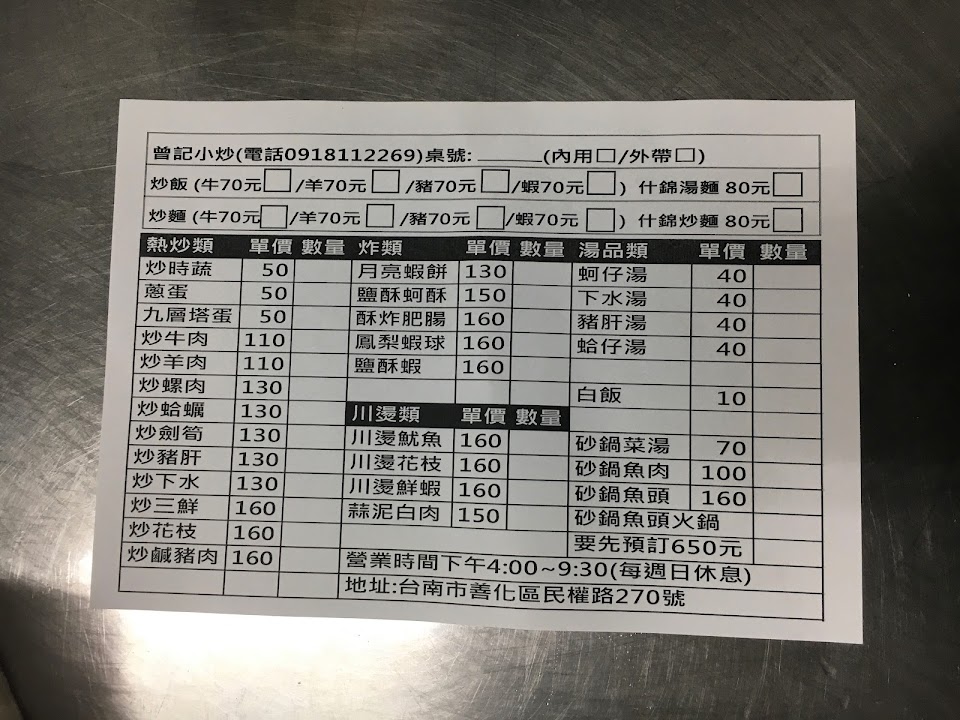 2024最新在地推薦餐廳的菜單_善化-曾記傳統小炒的菜單、圖片