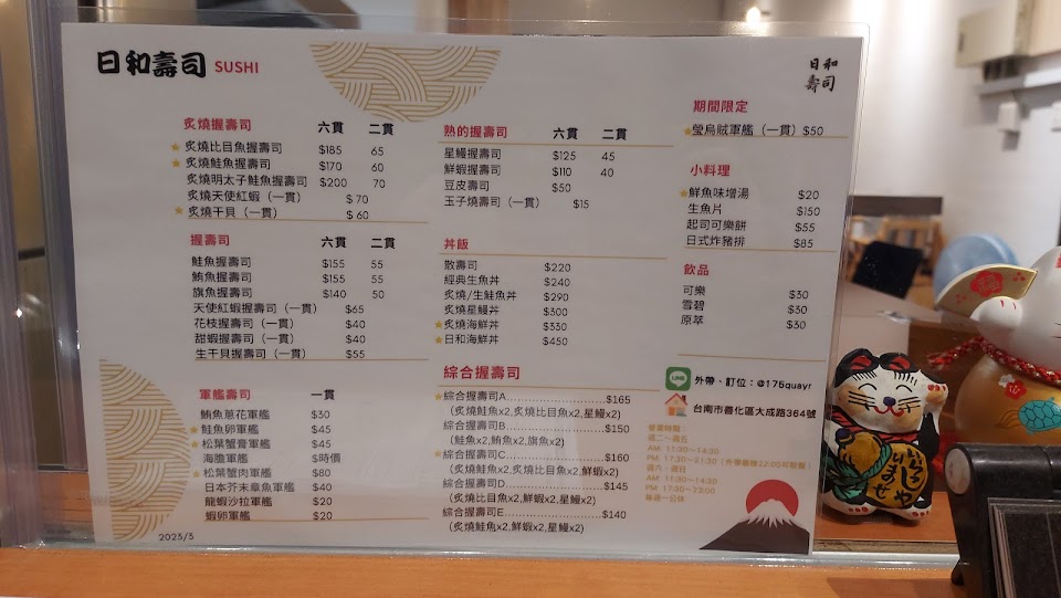 2024最新在地推薦餐廳的菜單_日和壽司 sushi(全品項供應中)的菜單、圖片