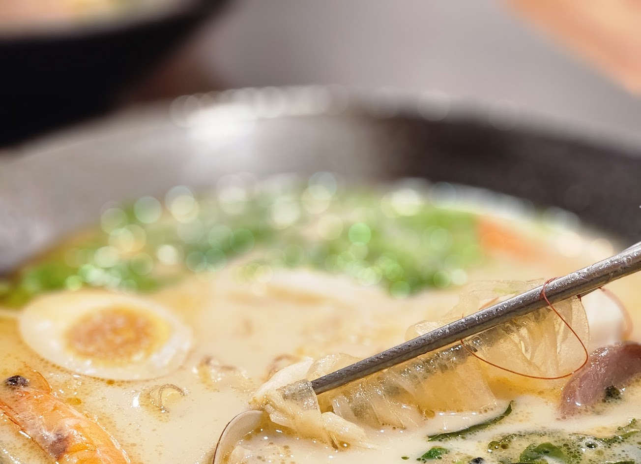 環境看起來有用心打扮。 晚上八點到 想點三百多元的炙霸拉麵,可惜賣完,咖哩飯好像也是熱門賣完。 點了一百多元的豚骨拉麵,吃起來台式口味。 可以+20元湯變濃,有加的話會多了一股蝦醬味。 喜歡蝦味的話,要加,我喜歡這個味道。 叉燒很小一片,但海鮮有蛤蜊、兩隻算大的蝦還有炸魚塊,還有菇跟蔬菜,所以算是對得起價格,滿豐富多種的料導致很像台式鍋燒麵。 河粉是透明的,很像冬粉,不是白色的那種。 服務 內用 餐點類型 晚餐 平均每人消費金額 $200-400 餐點:4 服務:4 氣氛:4